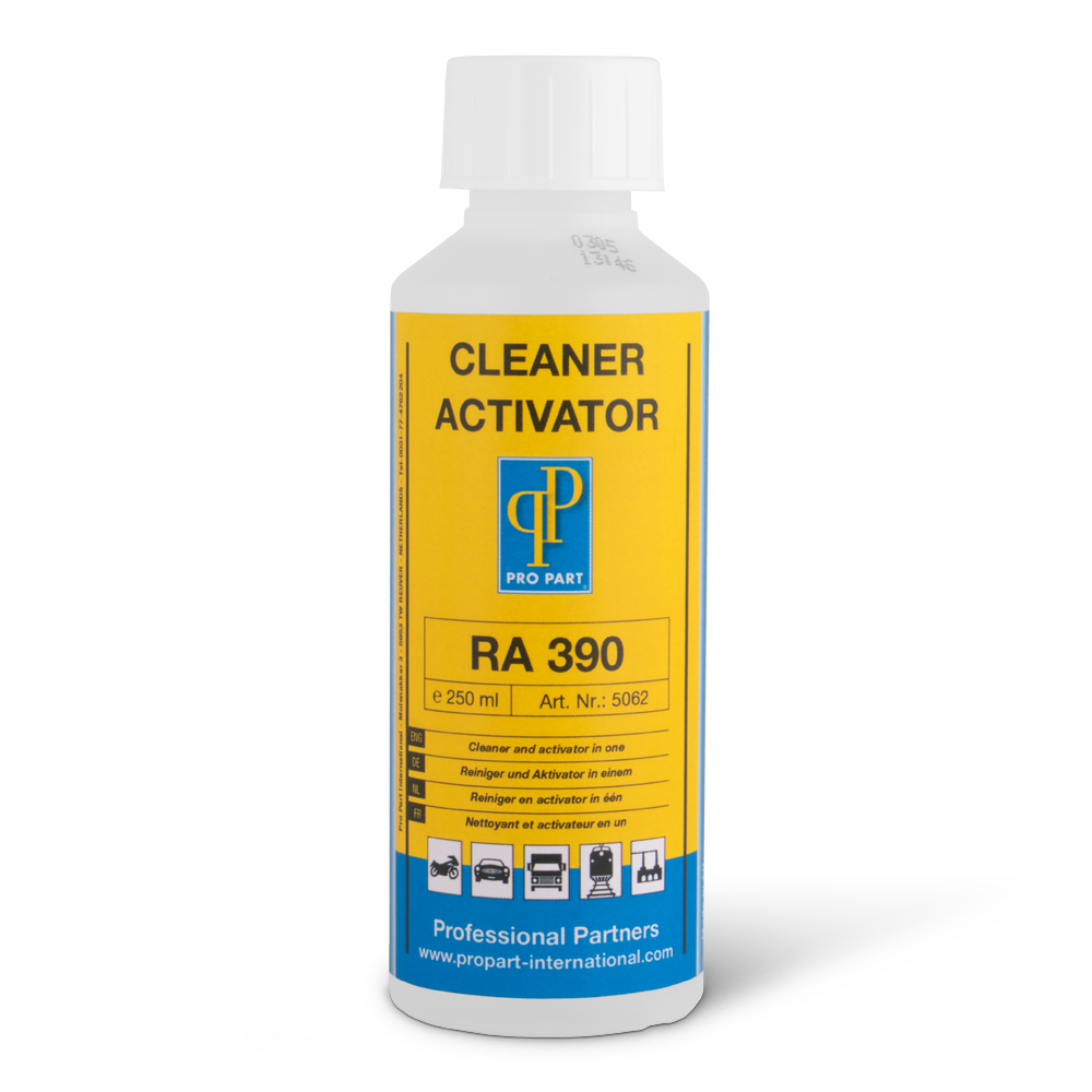 Cleaner Aktivator RA 390 ist ein Reiniger und Aktivator in einem. Der Aktivator reinigt alle Teile die mit PU und MS Scheibenkleber zum Verkleben sind. Sorgt auch für eine perfekte Haftung von Schwarz/Primer SP390 und MS390 Scheibenkleber. Das Produkt hat auch einen frischen, angenehmen Geruch, so dass es nicht störend ist, damit zu arbeiten.