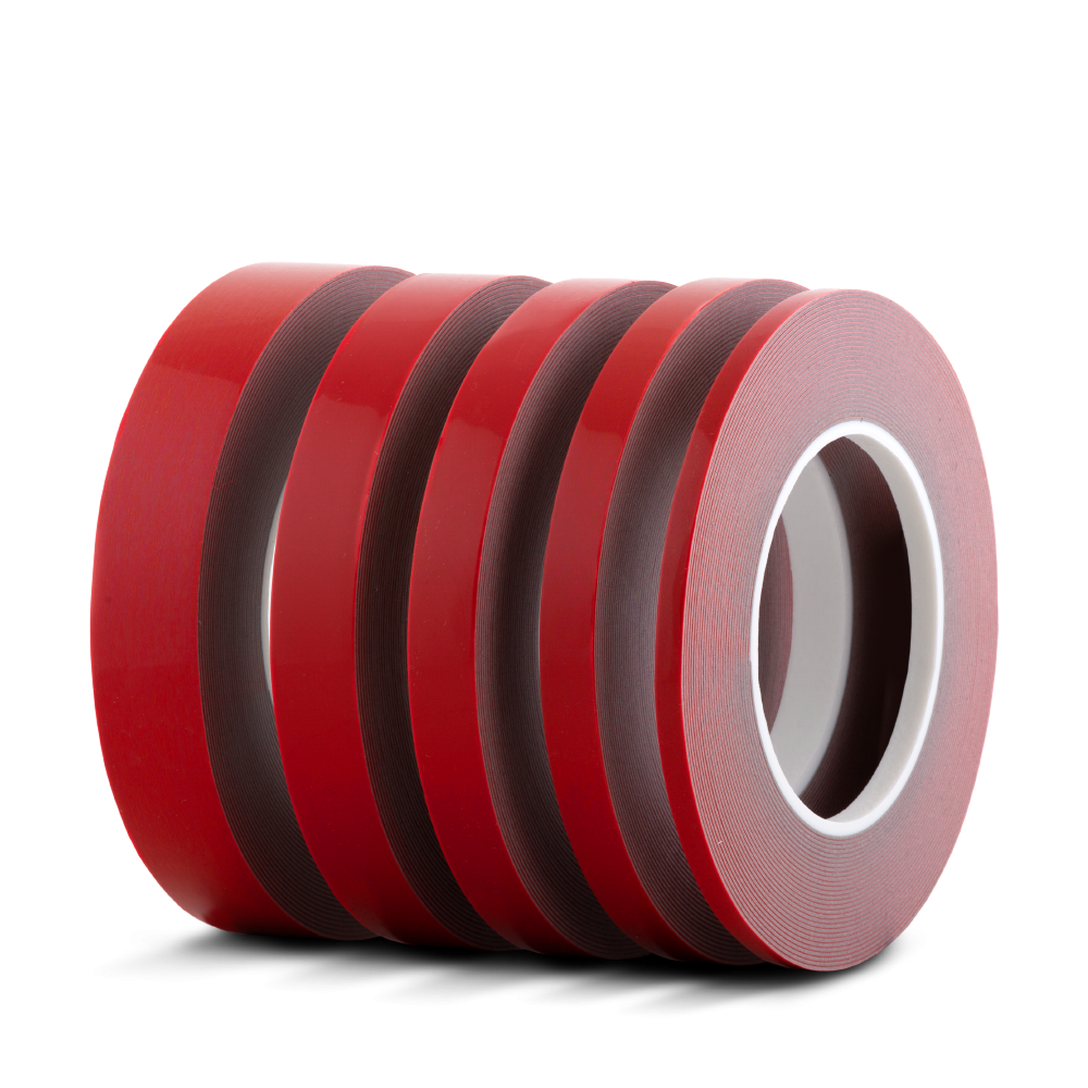 Double-sided adhesive high strong ist ein doppelseitiges Klebeband auf der Basis einer sehr stabilen Gummi. Die spezielle Klebeschicht des Bandes ist druckempfindlich. Der Vorteil hierbei ist, dass das zu verklebende Teil einfach mehr als einmal positioniert werden kann, ohne dass es bereits fest verklebt ist. Wenn das Teil an der richtigen Stelle ist, wird durch fest Pressen die endgültige Haftung erreicht. Double-sided adhesive high strong kann hohe Temperaturen standhalten von -35°C bis +95°C und gelegentlichen Spitzen von 150°C. Aufgrund seiner hohen feste Natur und seiner ausgezeichnete Adhäsion, ist es sehr gut in der Lage Materialien zu binden, um die gleichen Ausdehnungskoeffizienten sehr starr miteinander zu verbinden. Die sehr dichte Zellstruktur hat das Band so gut wie keine Probleme mit Feuchtigkeit und es ist auch beständig gegen Dieselöl und leichte Chemikalien. Diese Kombination von Eigenschaften macht dieses Band für die Montage auf glatten Oberflächen, Platten, Logos und (Kennzeichnung) Platten ideal ist usw.