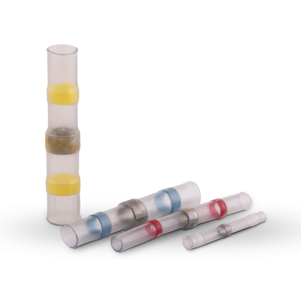 WELDING CONNECTORS sind Lötmuffen, die mit Schrumpfschlauch bedeckt sind.